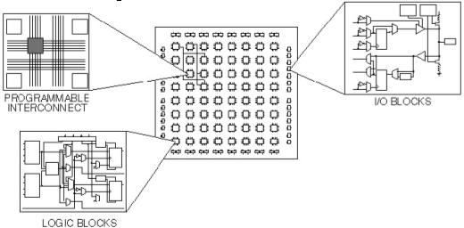 FPGA stands for “Field Programmable Gate Array”. This is a chip which consists of programmable hardware which can be used to design any digital circuit in it. The following figure shows the essential components of FPGA.